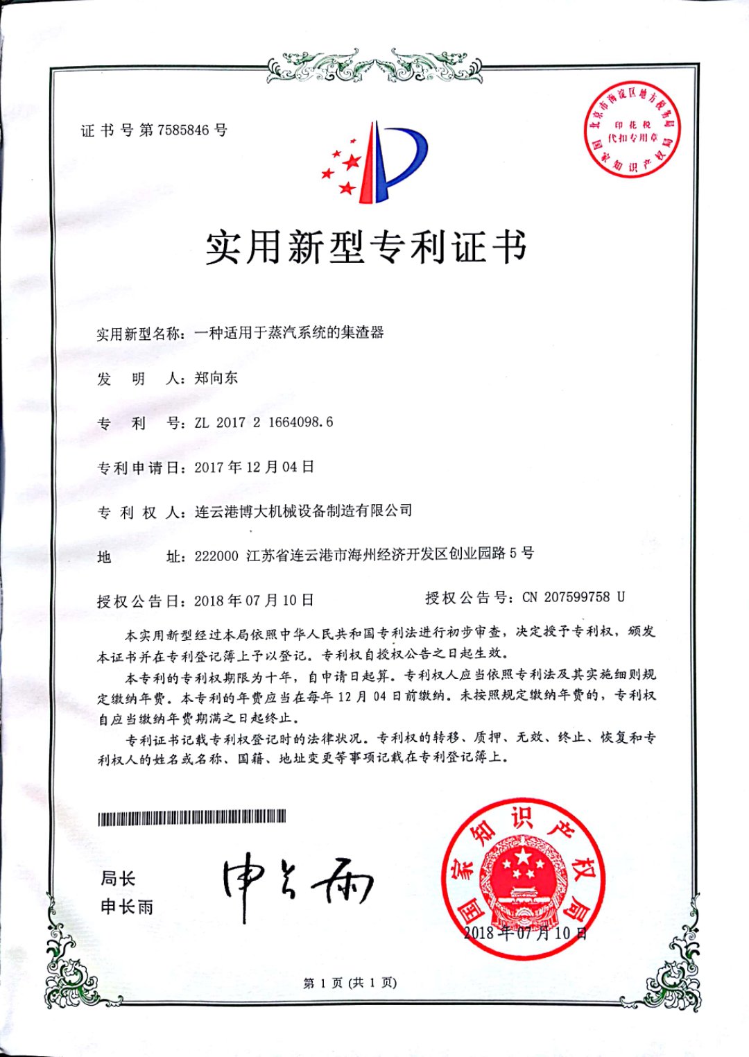 一種適應(yīng)于蒸汽系統(tǒng)的集渣器
