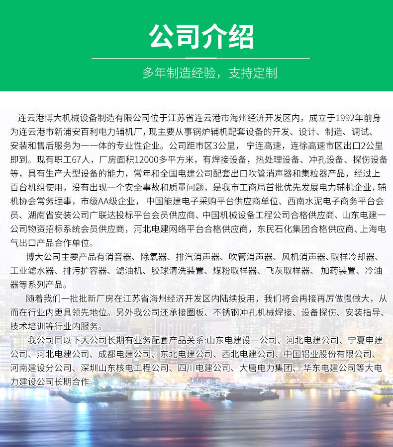 您好,歡迎光臨連云港博大機械設(shè)備制造有限公司官網(wǎng)!購買消聲器,消音器,吹管消聲器,風機消聲器,首選博大機械!